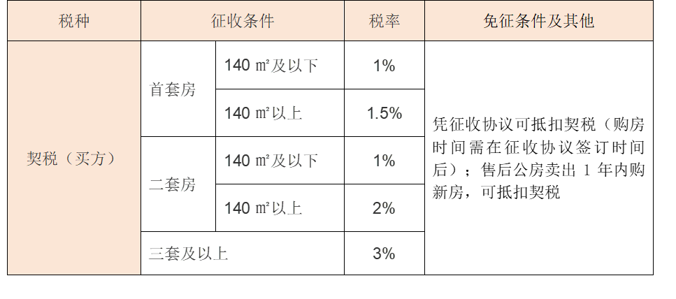 住房标准、契税按140㎡分级