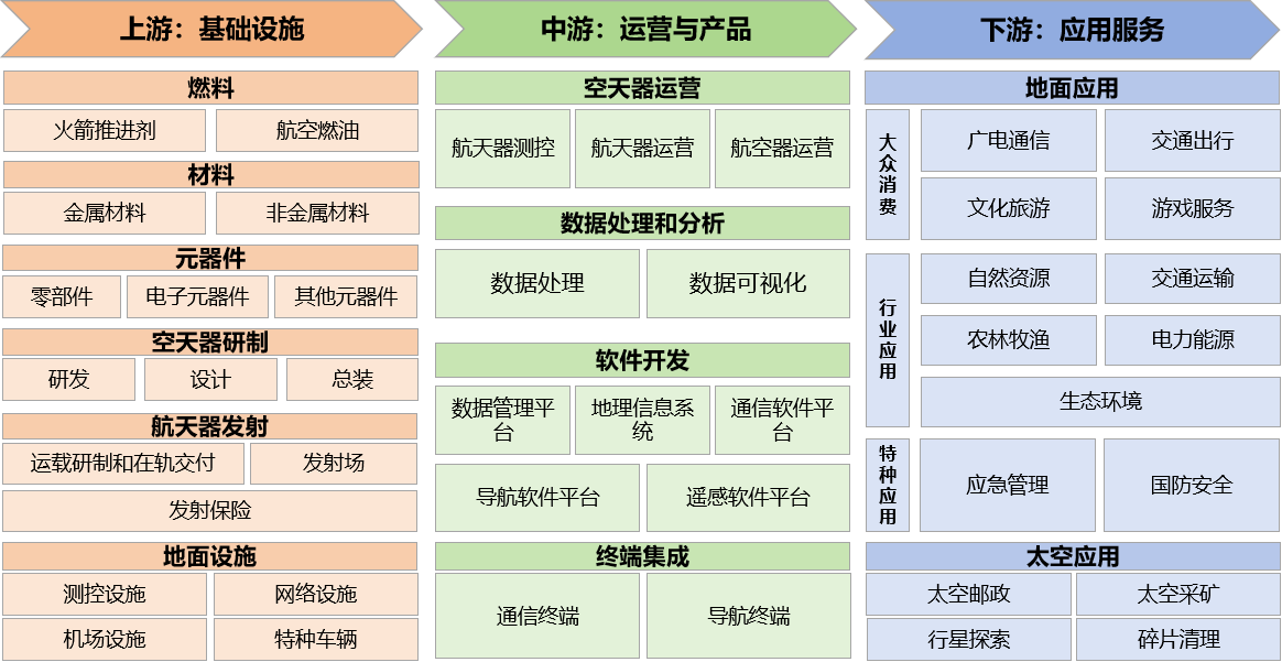 (3)下游“用星星”:通信、导航、遥感等数据的千行百业应用。
