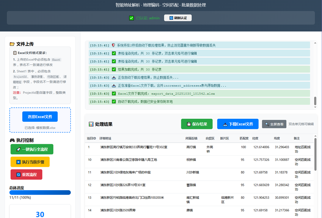 在实际场景中,只需将业务需求和原始数据清晰描述给AI,即可自动生成高效的Python脚本,完成数据清洗、转换和整合的全过程。以地址数据处理为例,可以构建完整的自动化流程:首先使用AI大模型从事件详情字段中自动提取地址信息;随后对提取的地址进行清洗和格式化处理(如将“某某市某某区某某路100号发生投诉”标准化为“某某市某某区某某路100号”);最后调用高德或天地图API将标准化地址转换为地理坐标。这种端到端的数据处理能力,使非结构化文本中的位置信息高效转化为可用于空间分析的标准化数据,便于快速导入数据库或数据仓库,显著缩短数据准备周期,帮助更快从数据中洞察价值。